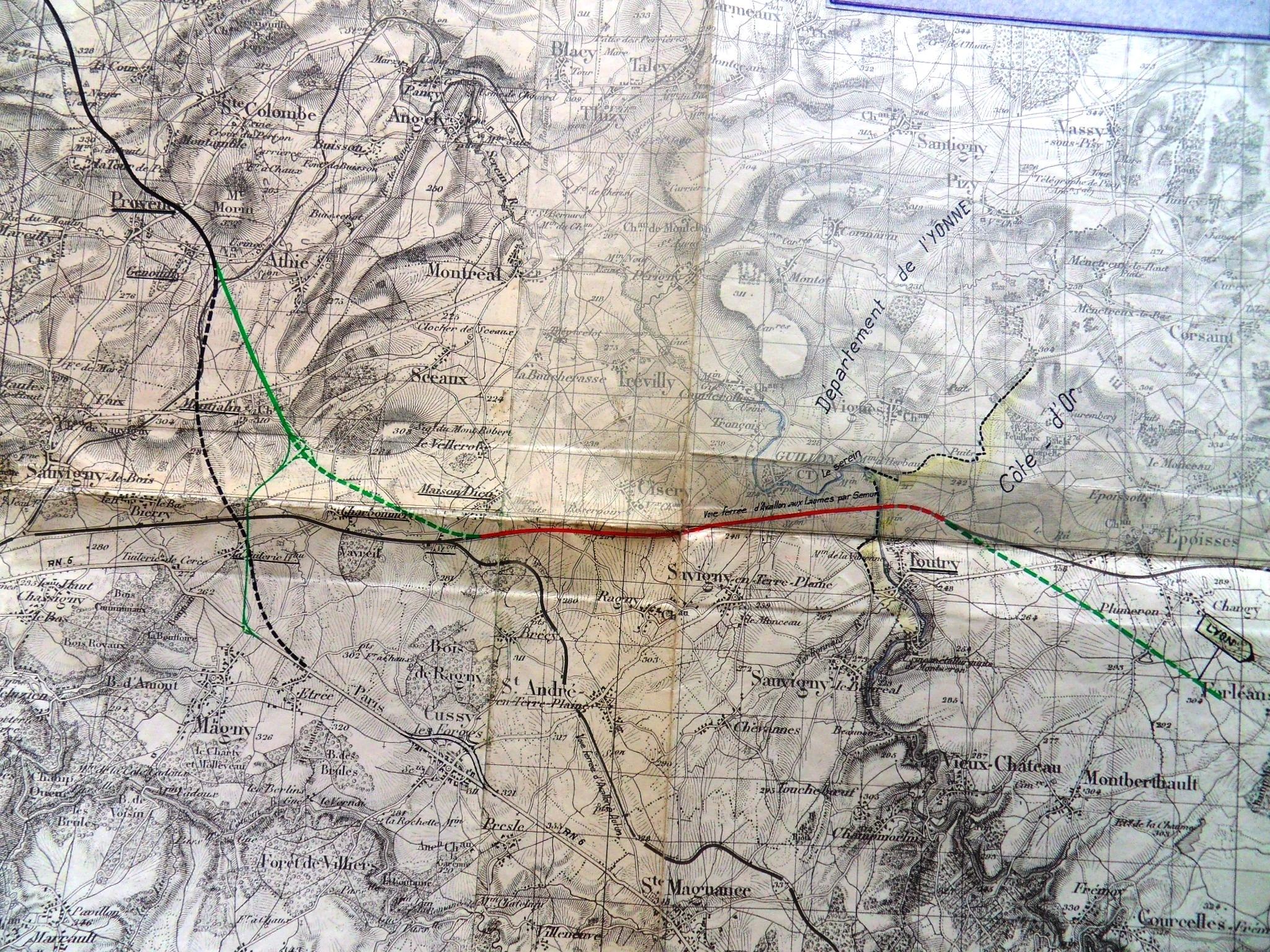 En Côte d’Or, on valide très rapidement une variante dite « de Toutry » qui permet de raccourcir la longueur de l’autoroute entre Forléans et Cisery, en franchissant le Serein en amont de Toutry. Dans l’Yonne, le tracé entre Athie et Guillon pourrait être raccourci d’un peu plus d’un kilomètre en coupant à travers la fameuse dépression de Sceaux (plan n°5) mais cette variante a toutefois un gros inconvénient : la traversée successive de deux vallons de petits affluents du Serein entraînerait des volumes de terrassement très importants (des tranchées de plus de 20 mètres et des remblais de plus de 15 mètres) dans des terrains avec une forte pente transversale, connus pour avoir de très mauvaises caractéristiques géotechniques. Le coût de construction serait donc supérieur et il y aurait potentiellement de gros risques pour la stabilité des talus. De plus, le profil en long présenterait une longue rampe à plus de 4 % donc la consommation des véhicules serait plus élevée, notamment pour les poids lourds, ce qui réduirait l’intérêt du raccourcissement du parcours.
