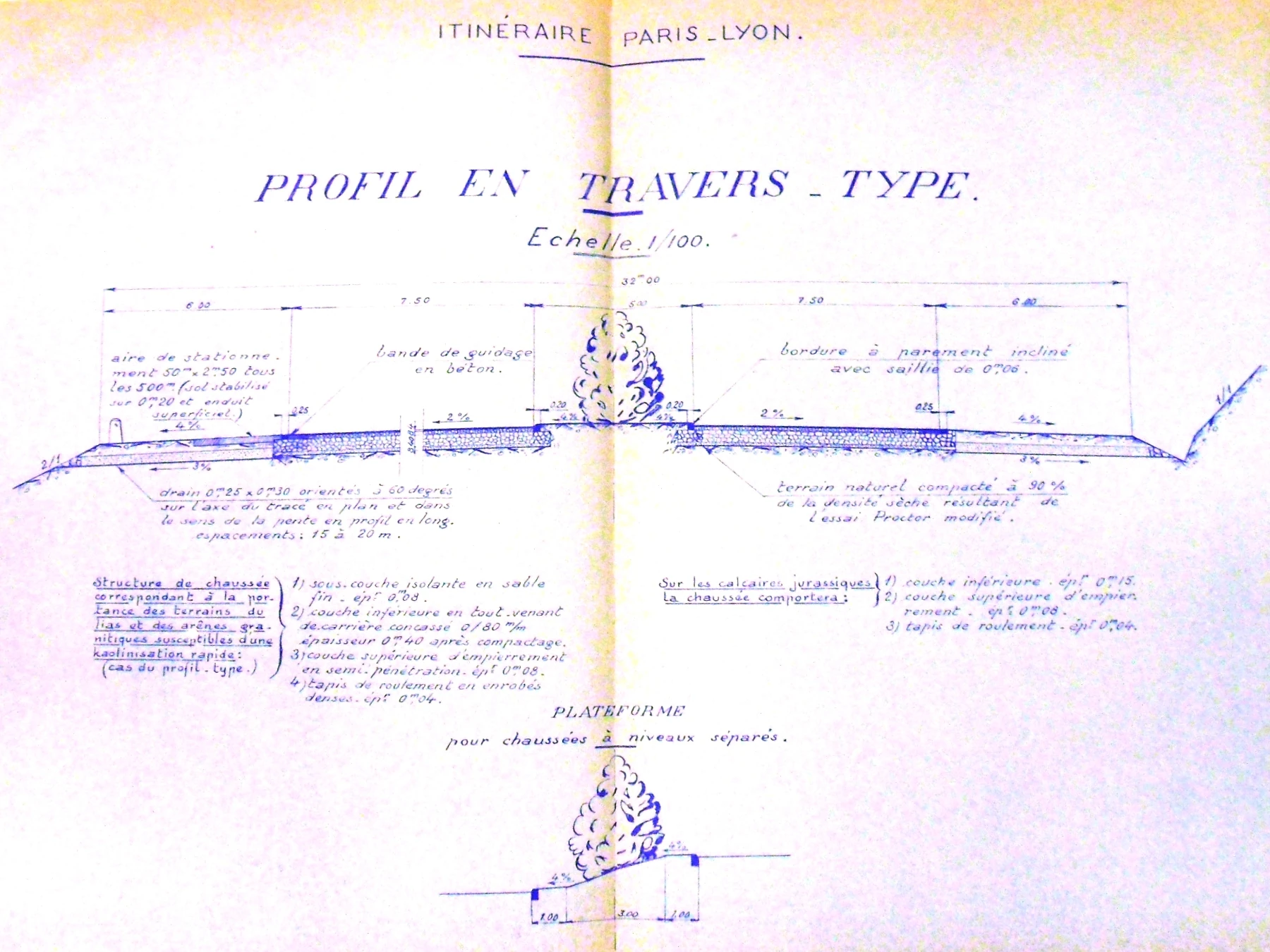 En ce qui concerne la largeur de la plateforme, la décision ministérielle retenant le type IV (largeur de 26 mètres, pour deux chaussées de 7 mètres non élargissables) n’a malheureusement pas été retrouvée dans les archives. On sait simplement que ce type plateforme a été choisi, de préférence au type III (largeur de 33 mètres, pour deux chaussées de 7 mètres élargissables par l’extérieur) car les études de trafic à long terme indiquaient qu’il n’y aurait que 7.500 véhicules/jour à l’horizon 1975, ce qui justifiait largement de ne pas prévoir une plateforme plus large, malgré le déséquilibre de trafic prévisible pour les jours de grande pointe.