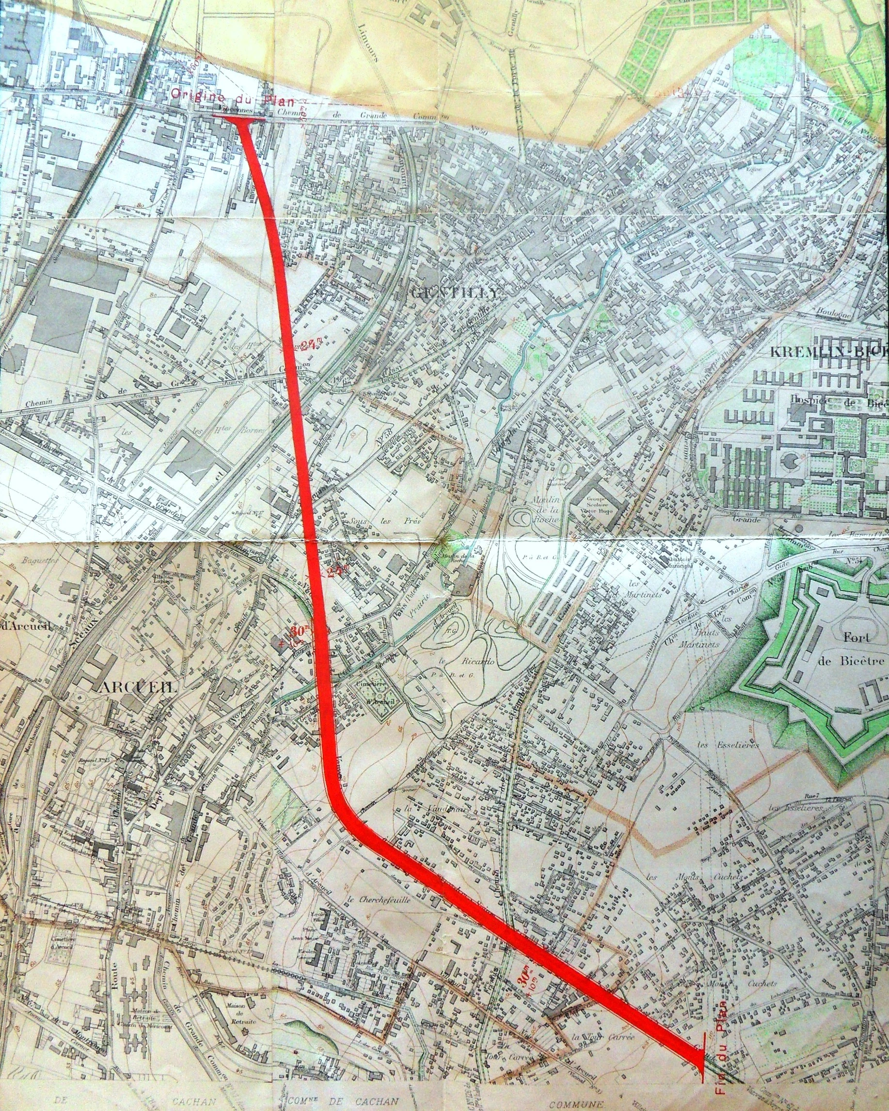 Extraits du tracé détaillé au 1:1.000e ou au 1:500e au Kremlin-Bicêtre (orientation du plan : le Nord est en bas à gauche)