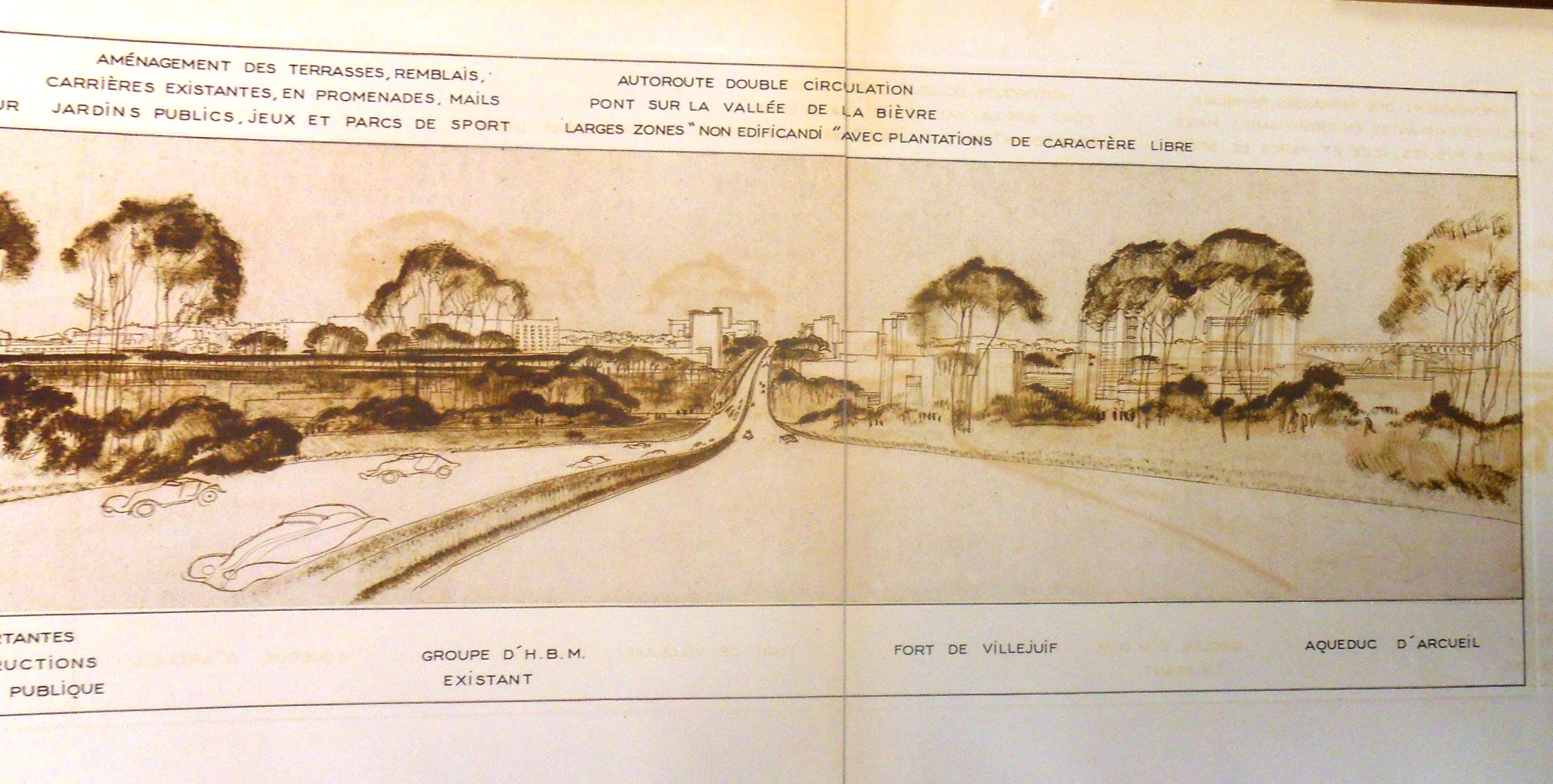 C’est au tout début des années 1930, lors des premières réunions de la Commission chargée de l’élaboration du projet de Plan Général d’Aménagement de la Région Parisienne, plus connu sous le nom de Plan Prost, qu’est retenu pour la première fois en France le principe de construire des voies spéciales à chaussée séparées, sans accès pour les immeubles riverains et sans croisements à niveau,[1] pour faciliter les principales sorties de l’agglomération parisienne. La Route du Sud est une des cinq routes nouvelles inscrites dans ce Plan "en vue des possibilités d’exécution immédiate".