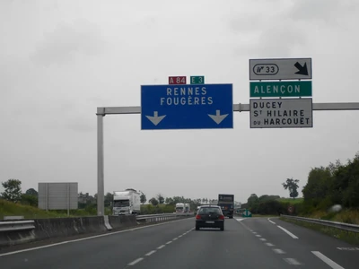 - L'A84 poursuit sa route en Ille-et-Vilaine, desservant Fougères, Saint-Aubin-du-Cormier, Liffré et Thorigné-Fouillard, avant de déboucher sur le Boulevard Périphérique de Rennes (N136) par un échangeur complet en T.