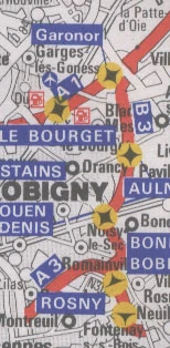 A la limite entre Bondy et Aulnay-sous-Bois apparaît un échangeur avec la future RN3Bis ou G3, voie rapide de premier ordre du plan routier de Seine Saint Denis, devant relier à terme les quartiers nouveaux de Clichy - Montfermeil à ceux de Pierrefitte – Villetaneuse, via Stains et Le Bourget ;