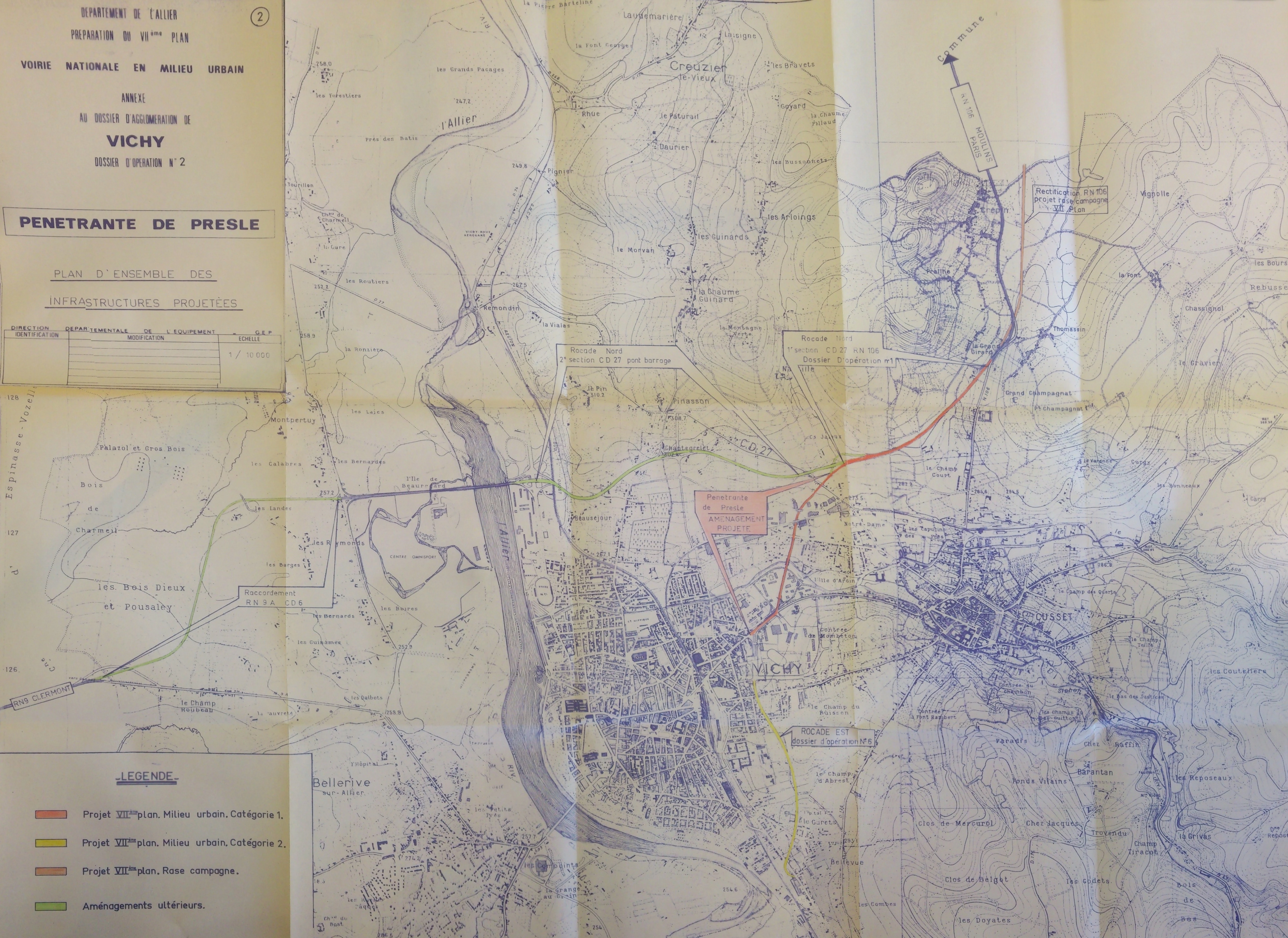 | En vert clair | Voies prévues au SDAU de Vichy en 1973. |