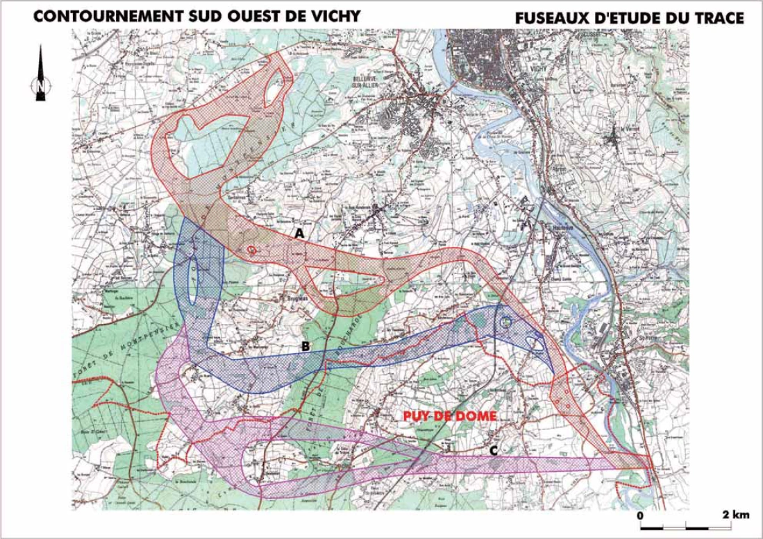 - La question d'un grand contournement Ouest resurgit avec l'élaboration du Schéma Directeur de Vichy approuvé en décembre 2001 et du Dossier de Voirie d'Agglomération réalisé conjointement. A partir de ce moment, chaque projet va suivre sa propre voie.