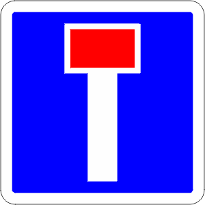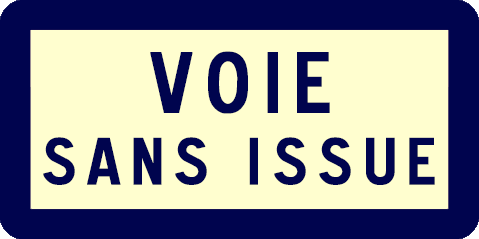 - La signalisation des chemins sans issue remonte à l'Instruction Générale de 1946. Une plaque rectangulaire à fond crème entouré d'un listel bleu était employée pour signaler diverses indications. La mention IMPASSE ou VOIE SANS ISSUE en sont des exemples.