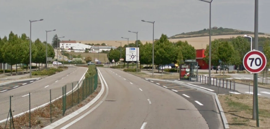 un diffuseur complet vers 2 rues se rejoignant sur la RN74,