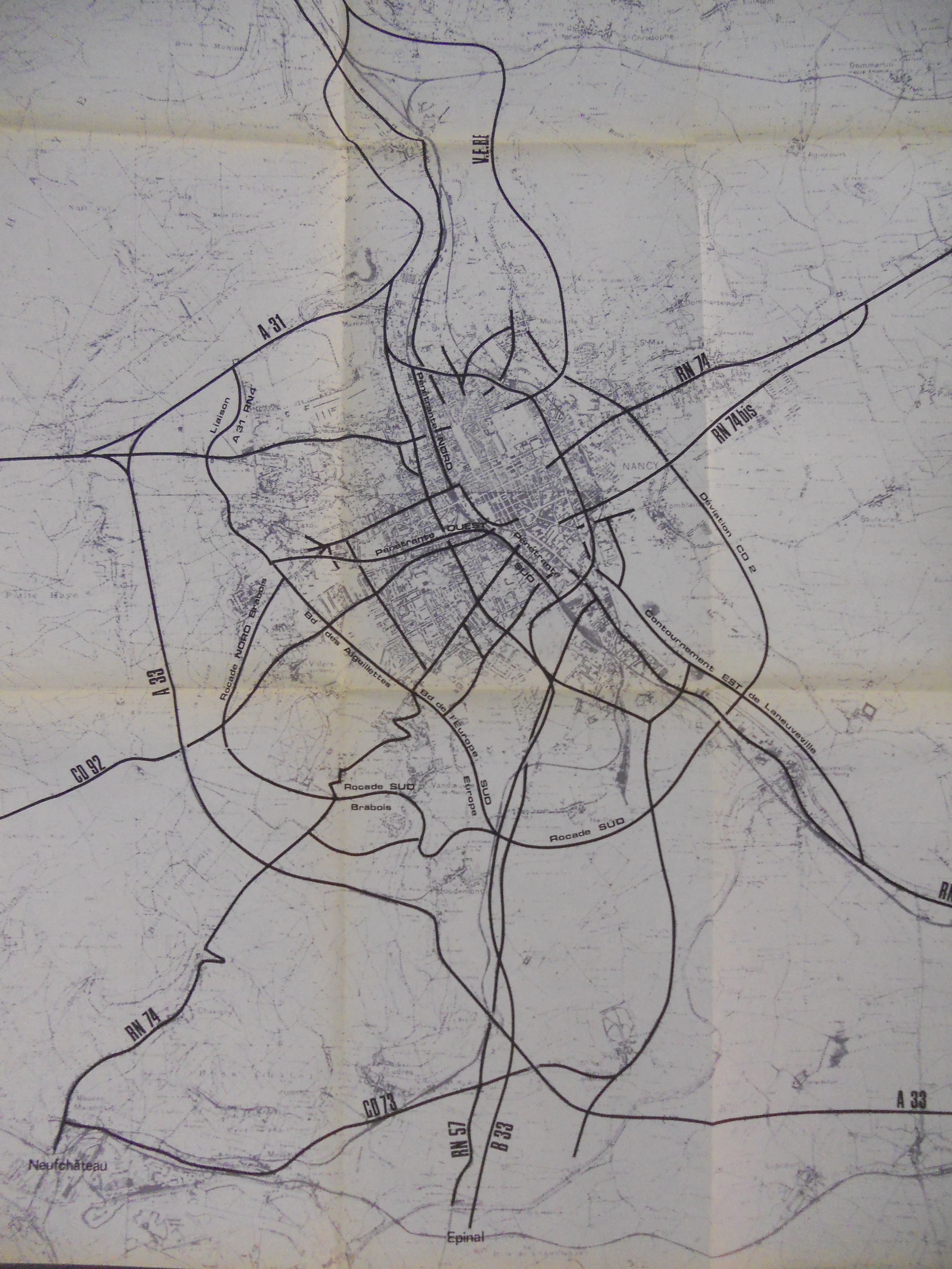 A partir de 1971, le District de l'Agglomération Nancéienne (ancêtre de la Métropole du Grand Nancy) a réalisé un plan directeur routier pour améliorer la desserte de l'agglomération, en particulier pour les flux internes à celle-ci. Cela devait se traduire par la construction d'axes nouveaux :