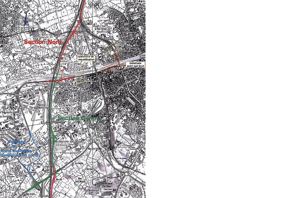 Plan des sections nord et centre de la rocade. © CD66