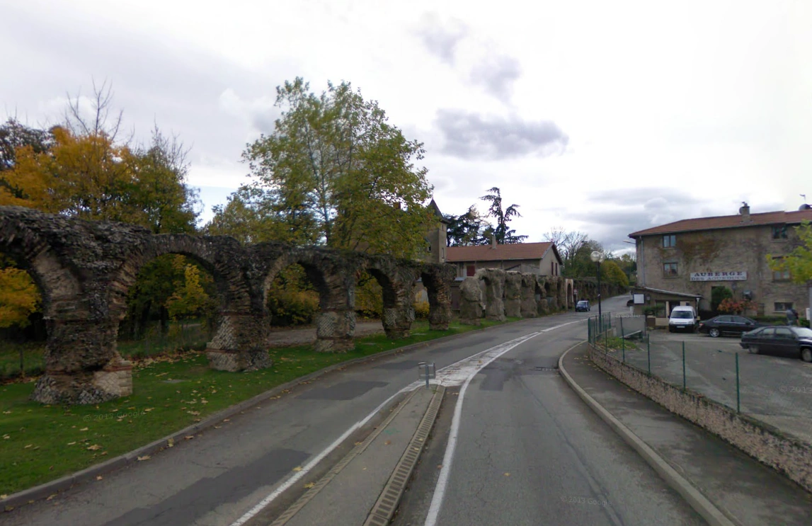 Elle monte alors à Chaponost et passe devant les vestiges de l’Aqueduc romain du Gier, dont on voit aussi des morceaux qui croisent la D342 à Sainte-Foy-lès-Lyon.