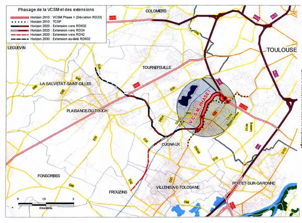 La phase 2 du projet (horizon 2020) concernait l'extension vers les M24, M42 et M632. A la place, Toulouse Métropole a prévu de prolonger le projet routier vers l'A64. La phase 3 du projet (horizon 2030) concernait l'extension au-delà de la M632, vers la M24.