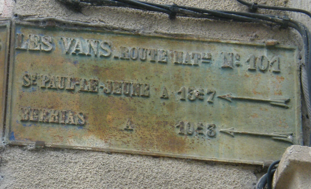 - Section Les Vans - Pont de la Chapelle : 1839 entre Les Vans et le ravin de Pailhères et 1840 entre le ravin de Pailhères et le Pont de la Chapelle.
