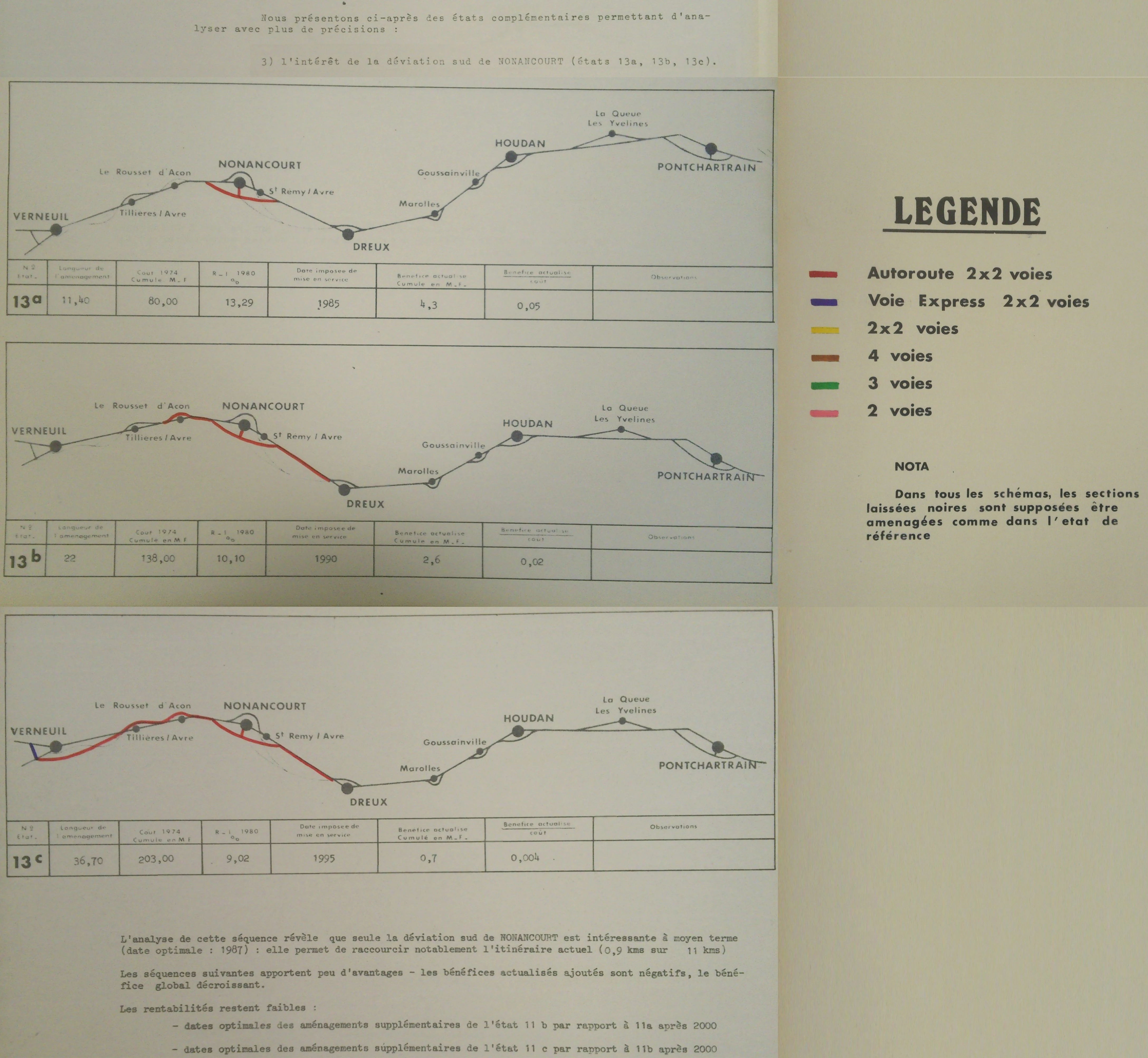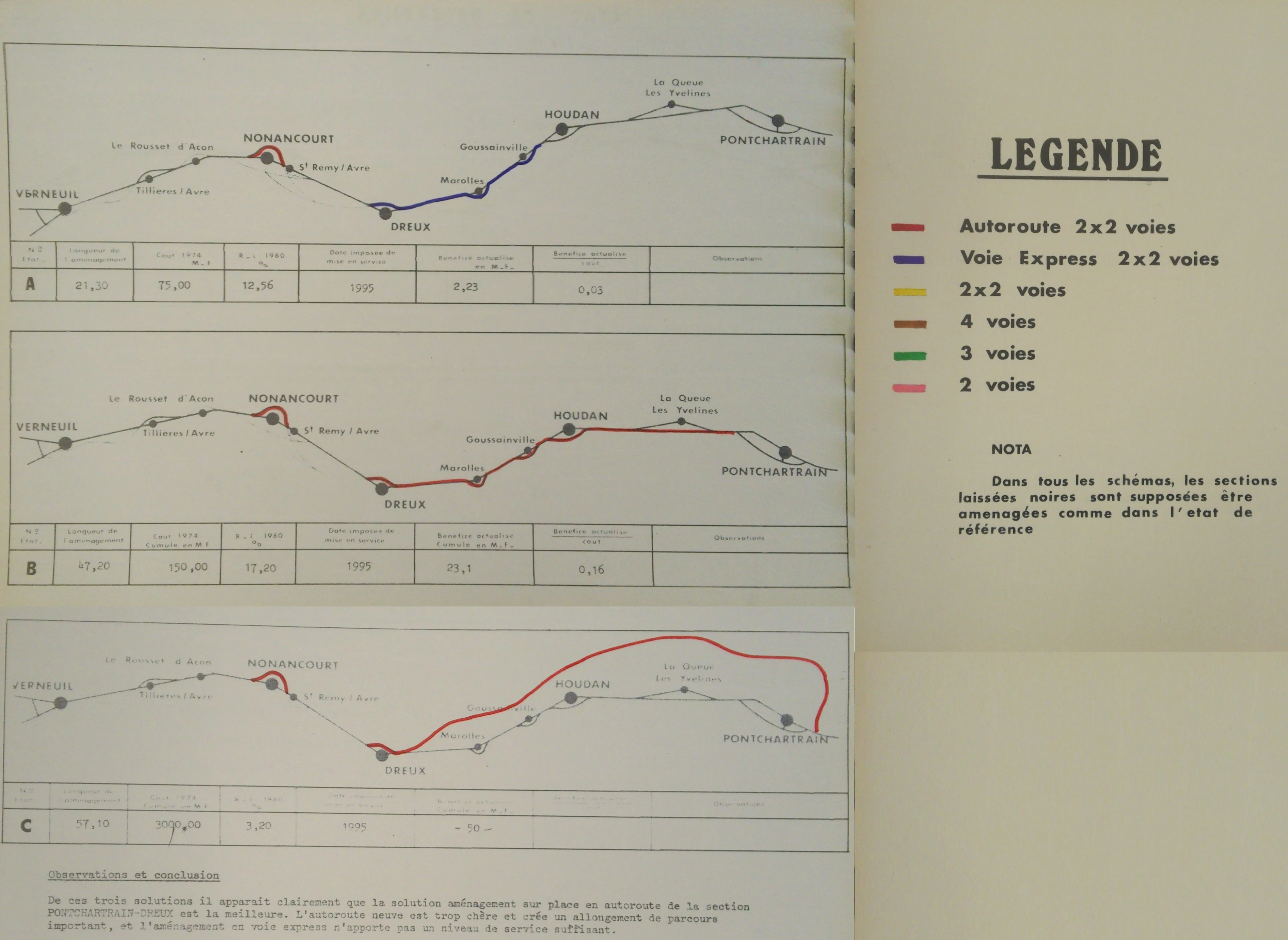 - Les solutions les plus intéressantes étaient celles pour lesquelles la section Dreux – Pontchartrain avait été aménagée en autoroute.