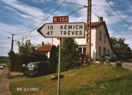 La RN153 devient donc la route de Thionville à la frontière allemande, à Apach.