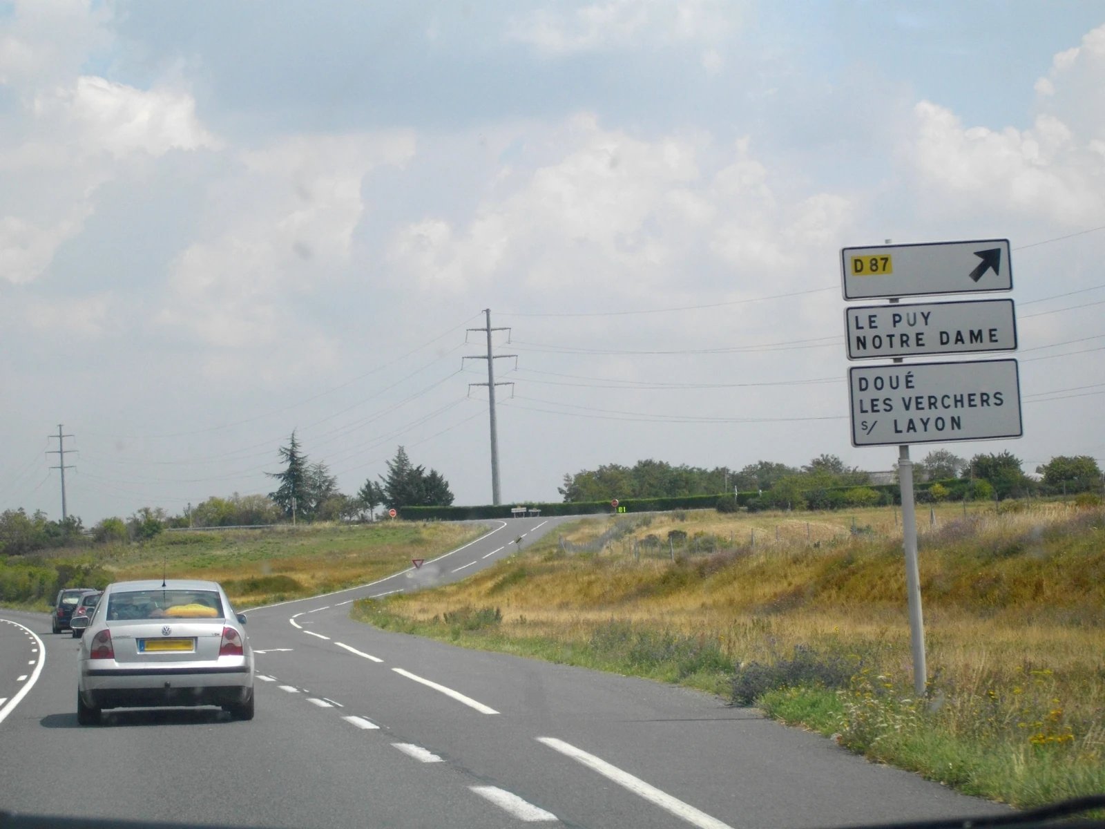 Sortie pour la D87 au sud de Doué-la-Fontaine, en direction de Saumur. © Atlasroutier