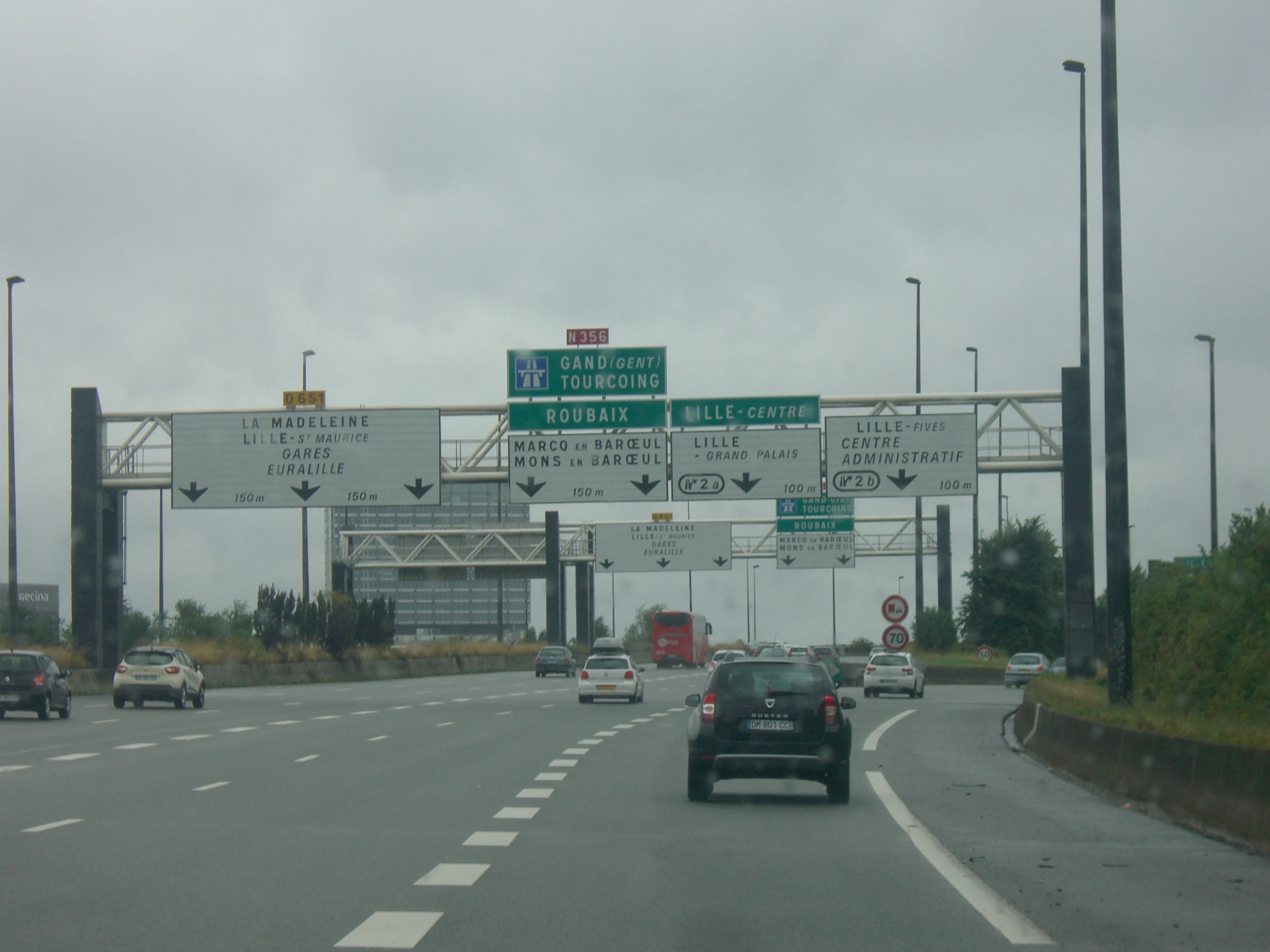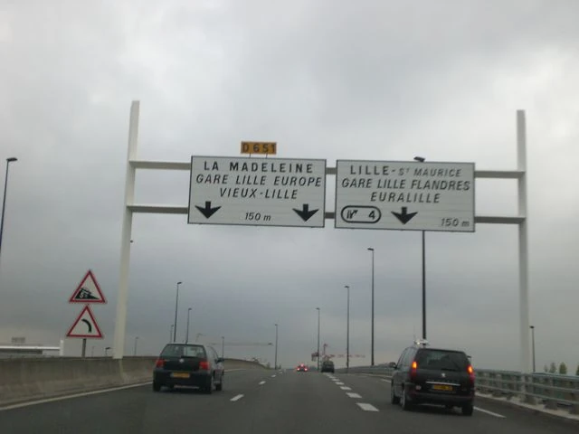 Embranchement vers la D651 et vers la sortie "Lille Grand Palais" dans la section au sud de Lille de la N356, en allant vers le nord.