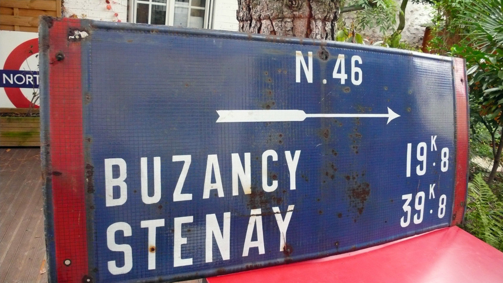 Très vieux panneau routier en tôle de la RN46. © Inconnu