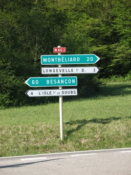 - En 1973, la partie orientale de la RN463, d'Exincourt à Folgensbourg, est déclassé en D463 et elle devient alors la route de L'Isle-sur-le-Doubs N83 à Sochaux N437.