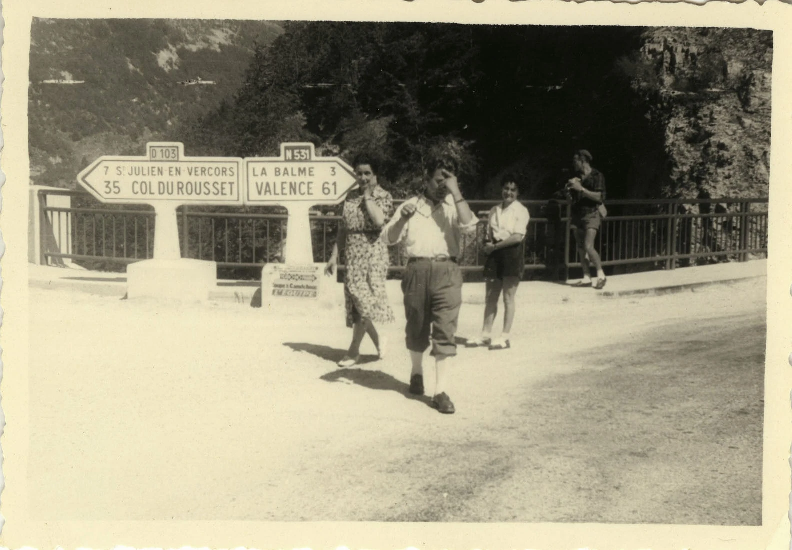 Panneaux Michelin sur le Pont de la Goule Noire. © Détail d'une Carte Postale Ancienne.