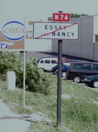 Panneau avec cartouche N74 entre Essey et Seichamps. Présent jusqu'en 2017. © Google Street View