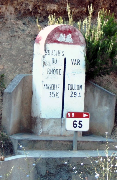 - La nomenclature de 1978 est plus concise puisqu'elle désigne la RN8 comme la route d'Aix en Provence, N. 7, à Toulon.
