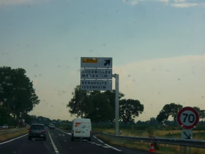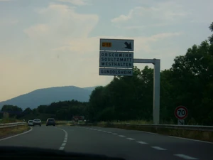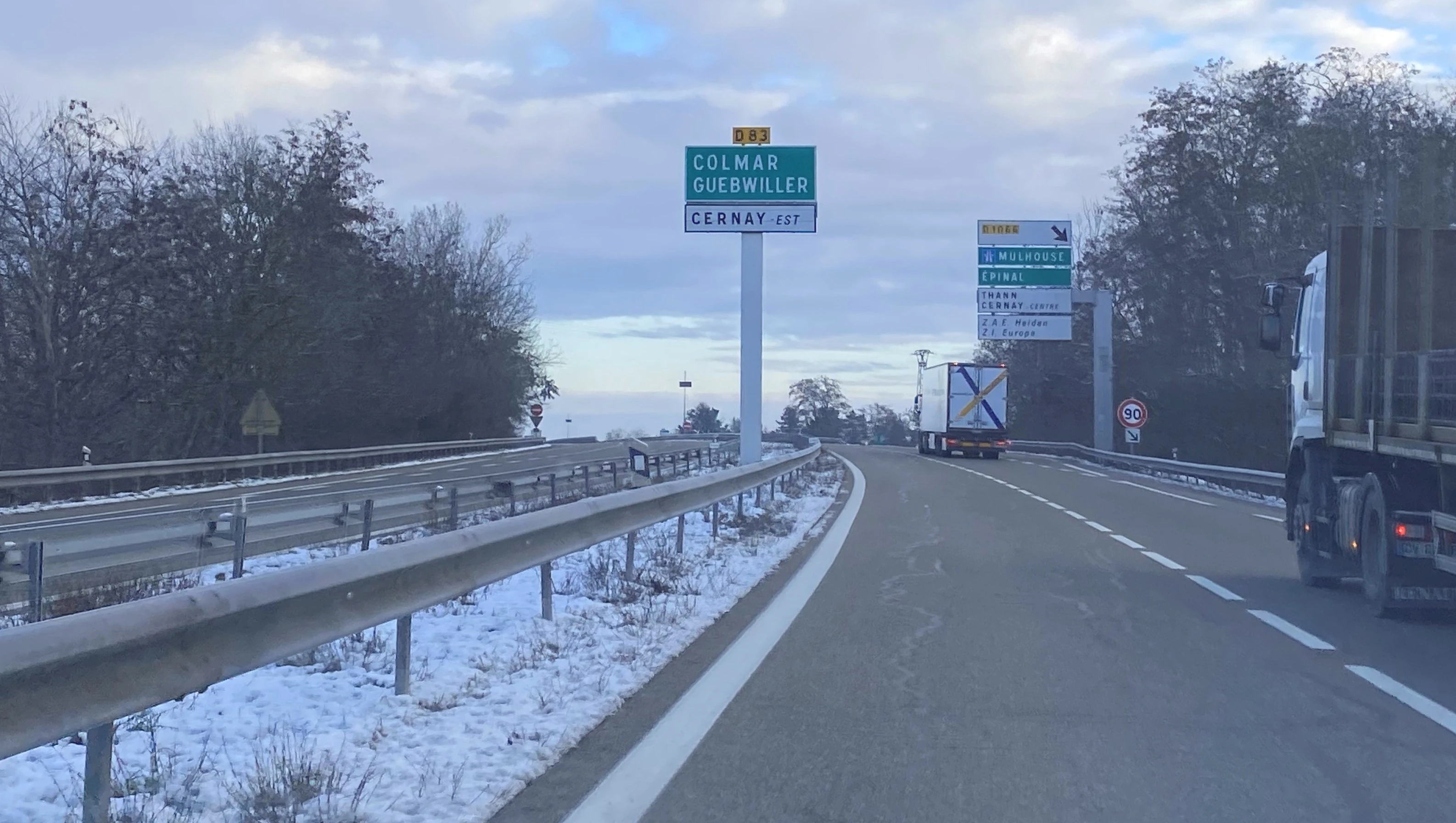 Échangeur entre la D83 (68) et la D483 (68) (ancienne RN83), à Burnhaupt, en direction de Colmar.