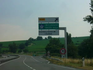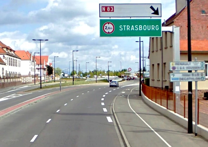 - Entrée d'agglomération : Benfeld. La route reste dénivelée et à 2x2 voies.