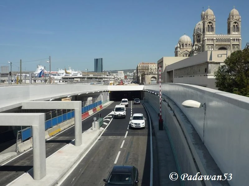 - Faisant partie du périmètre Euroméditerranée, ce tunnel classé en voie express a remplacé la partie terminale du viaduc de la Joliette, classé à l'époque en Autoroute française A55. Notons d'ailleurs que le tunnel, construit selon le principe de la tranchée couverte, est situé juste sous l'ancien axe du viaduc.