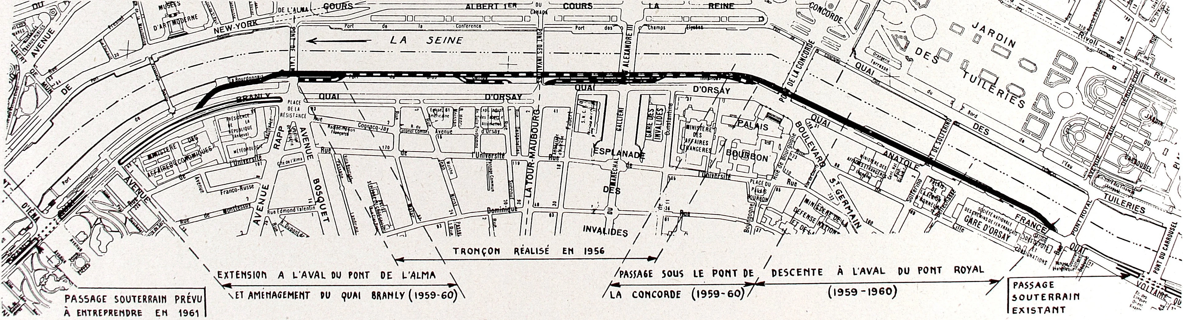 Sa réalisation est précédée par un élargissement des quais de Seine et une mise à sens unique entre 1941 et 1946. Devant l'intensité du trafic, il est décidé de transformer les rives de Seine en voie rapide.